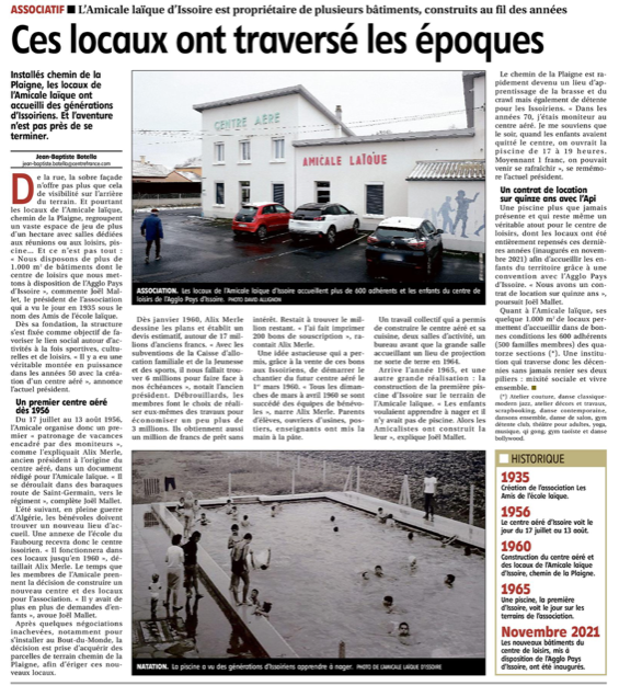 Avec sa piscine construite par nos prédécesseurs en 1965, l’Amicale Laïque possède un espace harmonieux répondant aux nombreuses activités associatives du territoire.